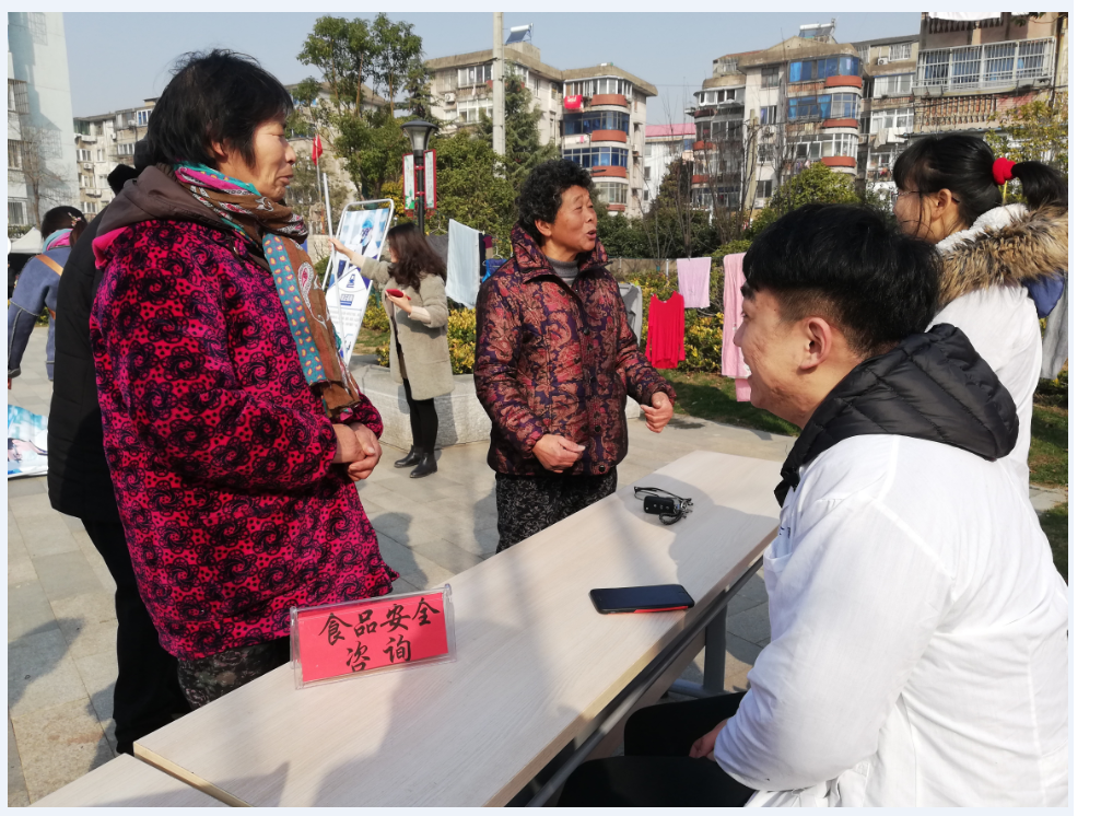2019年1月18日上午10點,農工黨文教總支書畫家黨員張建斌、顧忠兵、羅榮來到虹橋街道虹南社區文化廣場,開展了新春送福活動。江蘇權正檢驗檢測有限公司董事長、農工黨員顧衛兵先生調派2名公司員工,現場為居民免費提供了諸如飲用水、醬油、食醋、嬰幼兒配方食品等食品安全的咨詢和檢測服務。